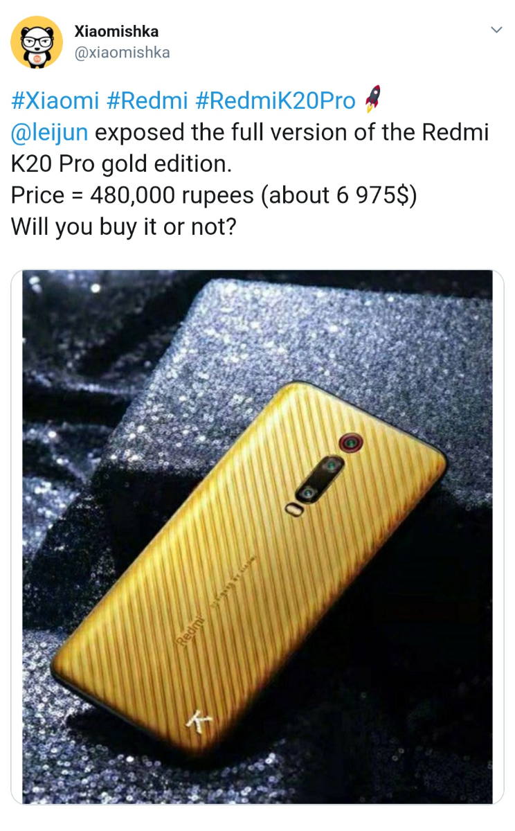 Информации на данный момент очень мало, но из твиттера российского инсайдера @xiaomishka было получено изображение специальной версии K20 Pro.