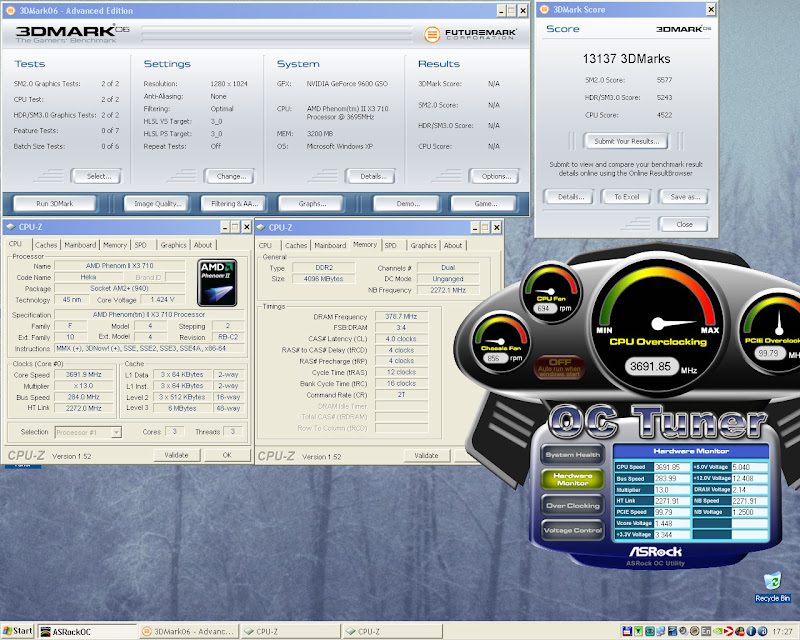 В 3дмарке 2006 на частоте 3.51ГГц получилось следующее