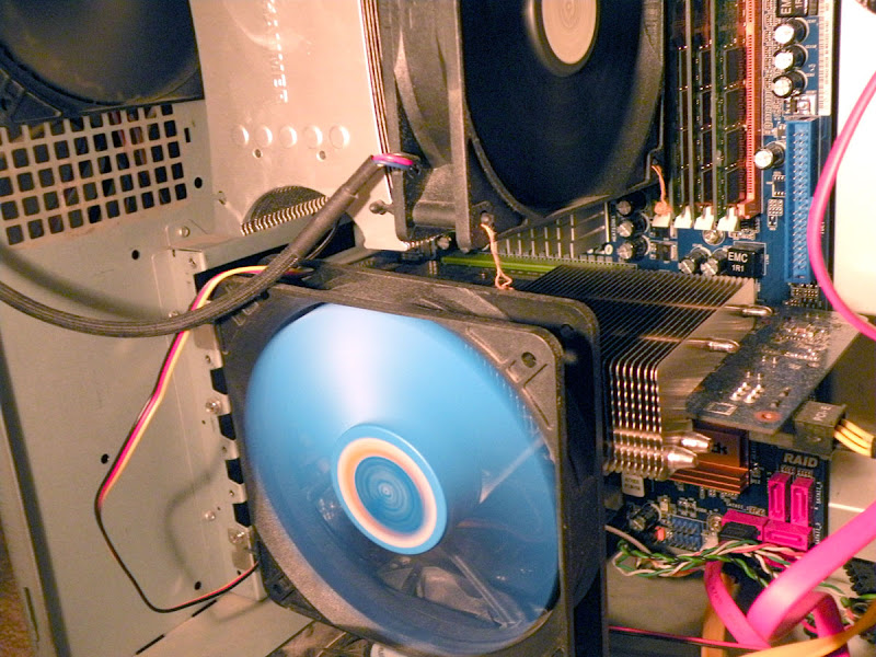 Фотографии самой материнской платы приводить не буду: все желающие могут найти их в достаточном количестве в интернете. При установке в корпус материнская плата не вызвала никаких проблем. Были опасения, что установленная на видеокарту CoolViva Z1 будет цепляться за радиатор северного моста, но это не произошло. В остальном же и вовсе никаких проблем: доступ к второму длинному pci-e не перекрылся (можно в перспективе установить туда все что угодно), да и доступ к слотам PCI не закрывается.