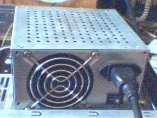 так как корпус с вертикальным блоком питания, то его стенка как раз нависает над процессором. Насверлив в этой стенке дырок (кстати, на это ушло намного меньше времени, чем я сначала предполагал), я добился понижения температуры на процессоре, однако стали сильнее греться радиаторы высоковольтных транзисторов в блоке питания. Прежняя схема охлаждения блока питания предполагала прохождение воздуха через не столь многочисленные отверстия рядом с радиаторами прямо через них и выброс наружу. Оребрение этих радиаторов не очень, и старая схема охлаждения была более эффективна, так как втягиваемый из корпуса воздух проходил через немногочисленные ребра радиаторов. Теперь воздуха через блок питания проходит намного больше, но он минует эти самые радиаторы. Они не намного стали сильнее греться, но побороться с этим нужно, что я в дальнейшем и буду делать.