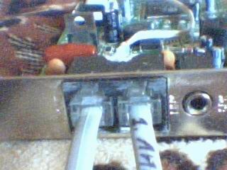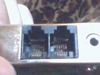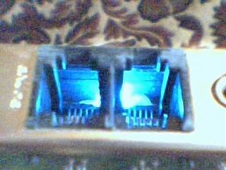 Так же в качестве эксперимента (очень руки чесались) я сделал подсветку RJ коннекторов модема. Там их два: один «линия», другой – параллельный телефон. Разъем под коннекторы на модеме был сделан в виде одного пластикового корпуса с перегородкой между разъемами, которую я рассверлил со стороны платы модема, вставил туда светодиод, залив пластиком, растворенным в дихлорэтане.
