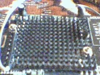 Как хорошо, что графический чип оказался в пластиковом корпусе! Иначе снять кулер без повреждения ядра не получилось бы. Уж очень он был на совесть приклеен. На ядро я поставил радиатор от все того же 486-го, распилив его на две части – побольше и поменьше. Место спила я обработал и подкрасил перманентным маркером, придав конструкции товарный вид. На радиатор я поставил 5-сантиметровый вентилятор.