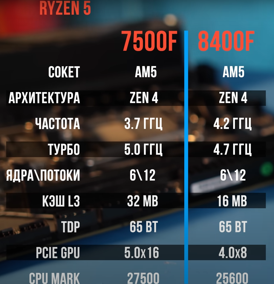 Многие из нас в один голос скажут, что самый народный процессор на AM5 — это Ryzen 5 7500F, в среднем за 14-16 тысяч рублей, и да, будут правы — это мощный чип, который вытянет практически любую видеокарту. Да, этот процессор очень хорош, но у AMD в запасе припрятан самородок — это Ryzen 5 8400F за 10-12 тысяч рублей. На бумаге это урезанная отбраковка, попытка красных продать полный неликвид, но как все же дела обстоят на самом деле и насколько велика разница с 7500F — мы это проверим на практике.