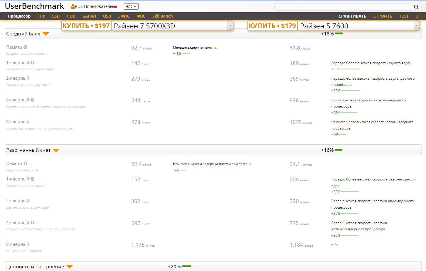 Ценность и настроение у юзеров +20% для 5700X3D, хотя по показателям 7600 несомненно в лидерах.