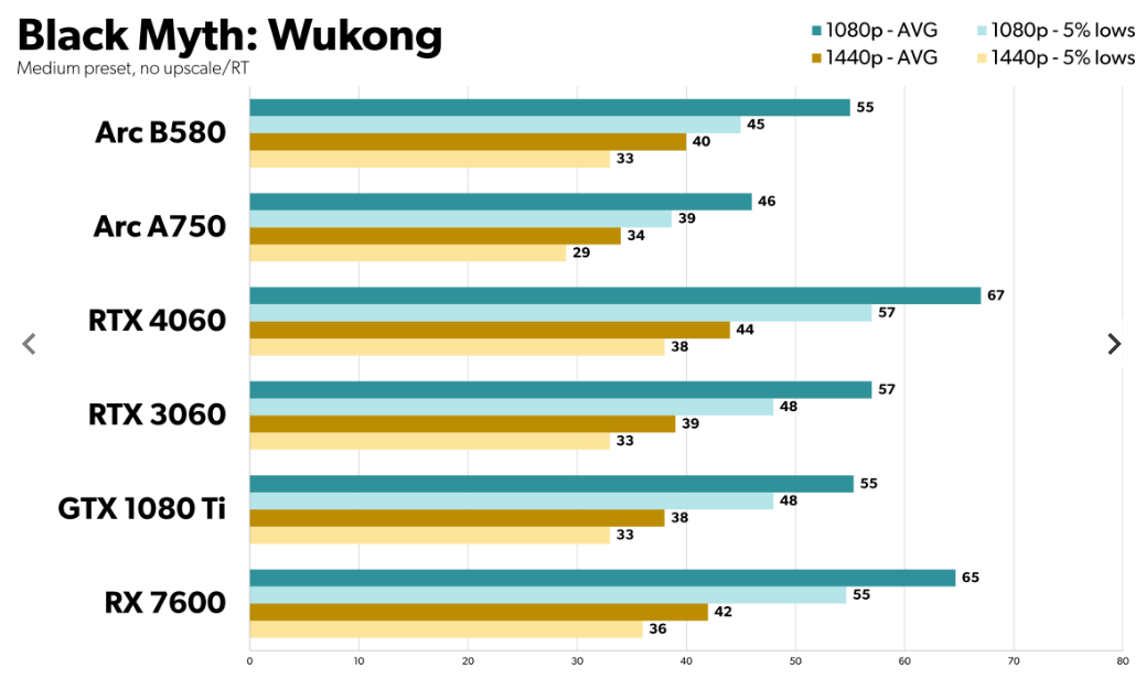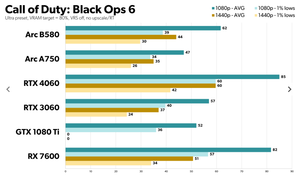 1. Arc B580 действительно создан для игр с разрешением 1440p