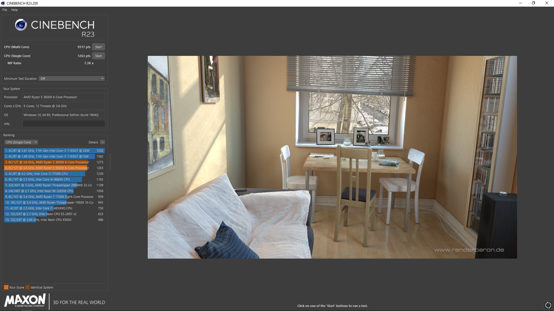 Cinebench R23: Стоковые частоты процессора и памяти