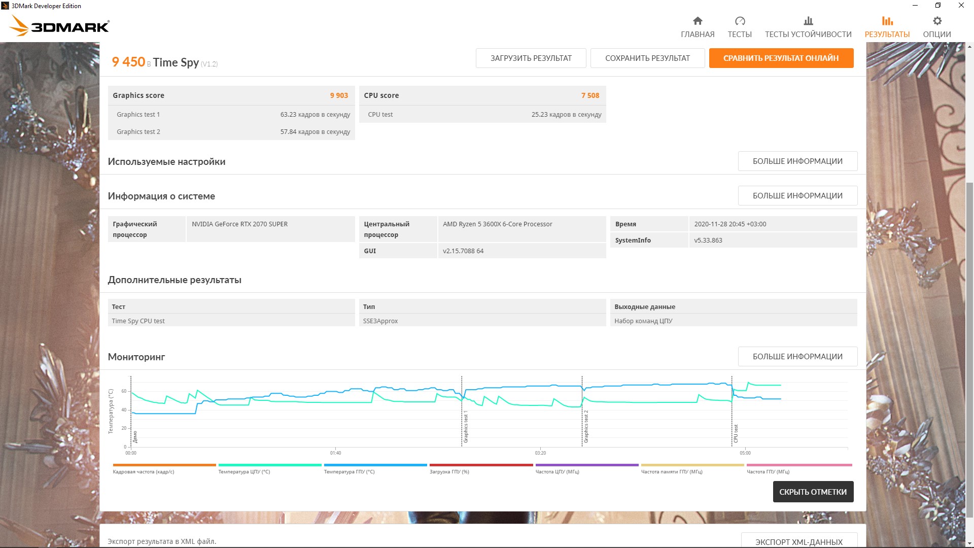 3DMark: Стоковые частоты процессора и памяти