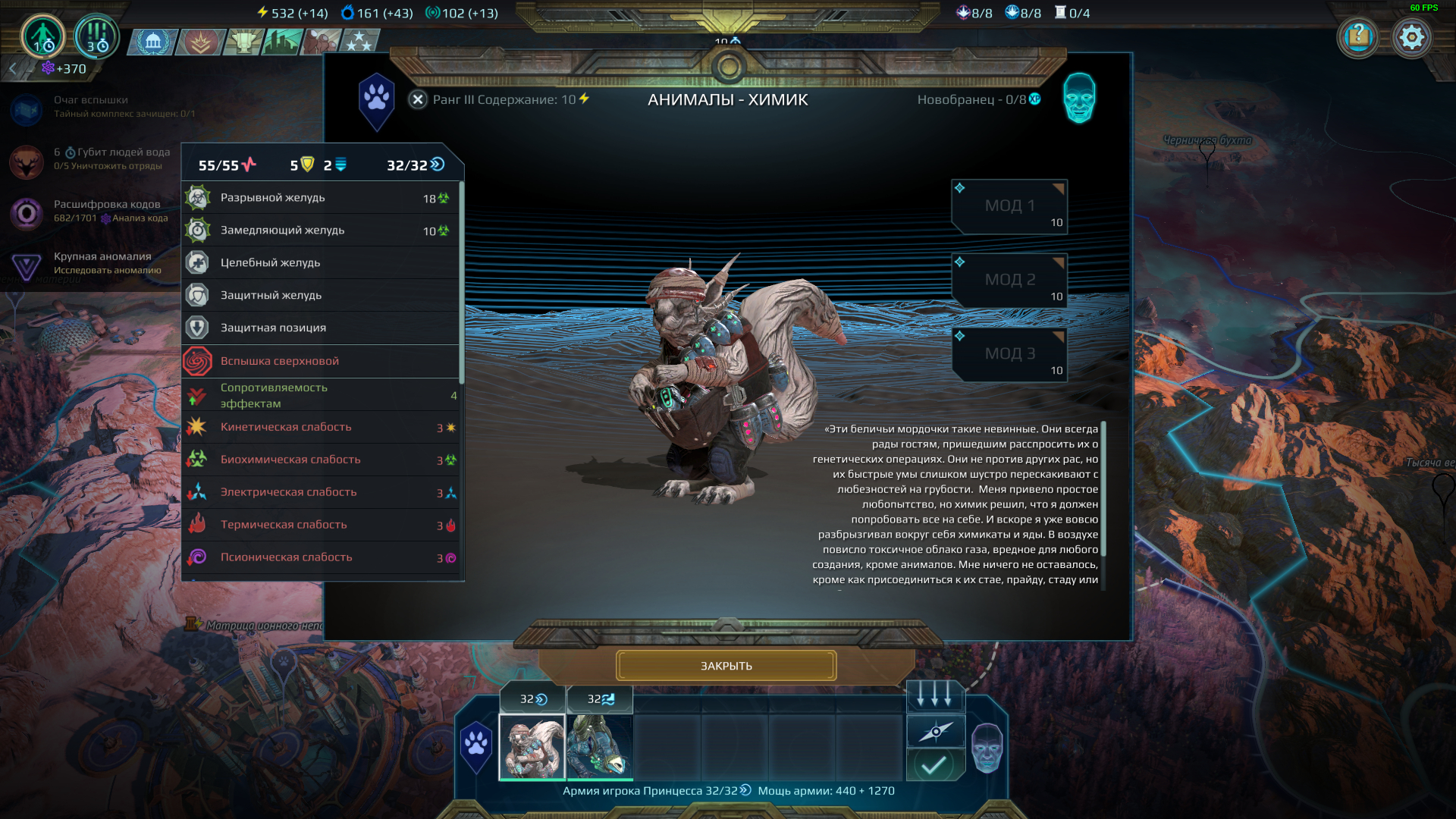 - Герой в технике. Если у героя изучен навык управления, то он может сесть в технику, как правило, это некий юнит 2-го ур, т. е. герой превращается в данный юнит, сохраняя свойства героя. Если выучено продвинутое управление, то можно сесть в транспорт 3-го ур. Или 4-го, если повезло такую машинку раздобыть. Техника размещается в слоте основного вооружения, и в бою, герой применяет либо вооружение юнита, либо оружие в дополнительном слоте. При потере всего HP, герой покидает машину с малым запасом HP, и может продолжать бой, используя навыки героя и дополнительное вооружение. Так же существуют навыки, направленные на усиление героя вне техники (иногда это выгодно, например, удалось добыть очень хорошее вооружение, или доступные транспорт не нравится). Вариантом данной механики являются ДНК-инжекторы, которые можно купить у малой расы фуррей-анималов. Они так же ставятся в слот оружия и превращают героя в фурря. Доступны превращения в любой юнит анималов, в т. ч. 1-го и 4-го ур.