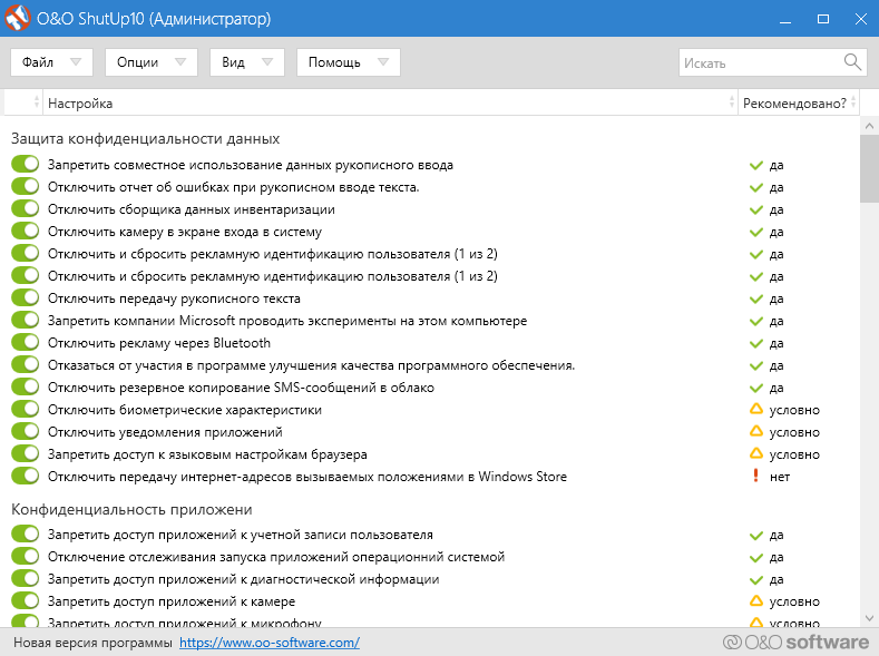 Данную программку необходимо запускать после каждого кумулятивного обновления операционной системы, потому что могут сбрасываться настройки приватности.