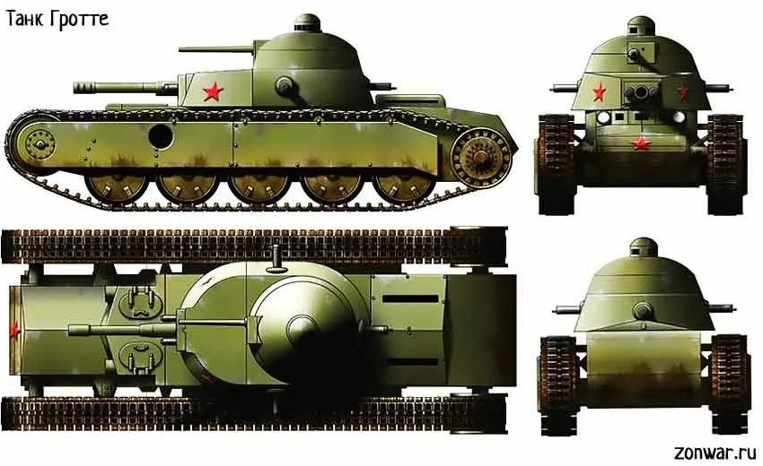 Проектировщик не впервые работал с танками. В 30-х годах прошлого столетия он разрабатывал схемы вооружения для СССР. К примеру, в 31-ом году был представлен «Танк Гротте», ещё называемый ТГ-1, не прошедший испытания.