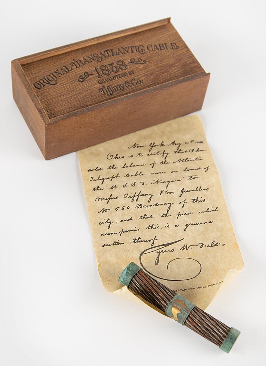 Сотрудники Тиффани порезали трос на маленькие кусочки по 10 см, а с обеих сторон поставили латунные кольца. На них присутствовала надпись, подтверждающая, что это оригинальный атлантический кабель, а также была выбита дата.