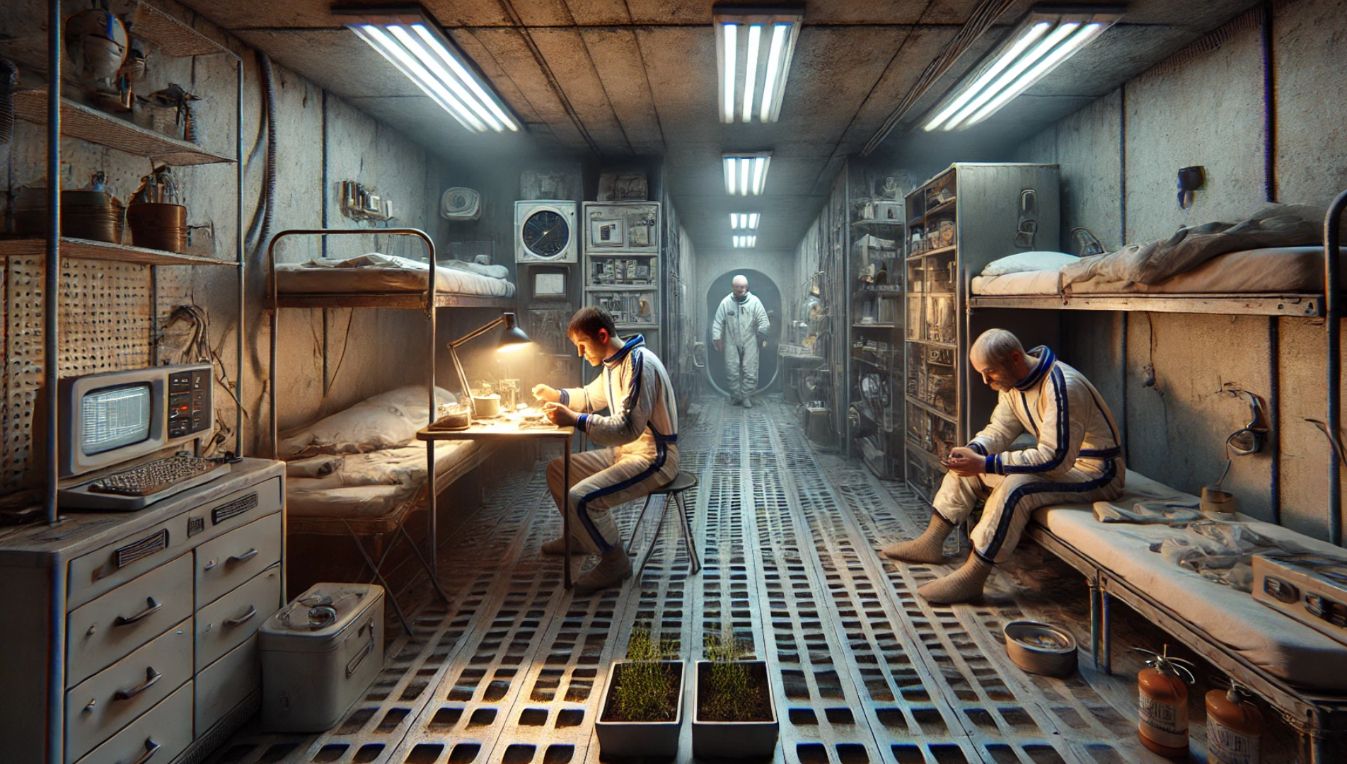 Кислород тоже не поступал извне. Воздух постоянно регенерировался вентиляторами, жужжащими невероятно шумно. В подобной обстановке трем мужчинам требовалось прожить год, при этом исправно выполняя возложенные обязанности и пребывая под надзором видеокамер.