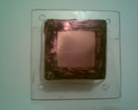 Так выглядит его подошва. Я специально закрасил ту область чёрным маркером, которая не контактирует с процессором.