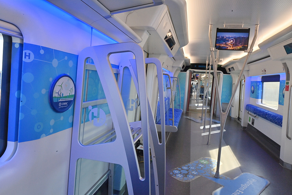 Интерьер междугороднего поезда, работающего на водороде, в Чанчуне, провинция Цзилинь на северо-востоке Китая, 21 марта 2024 года. [Фото/VCG]