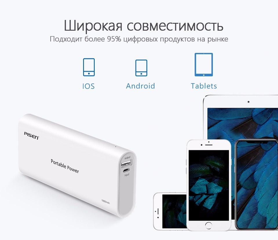 Благодаря своей практичной форме он сможет без труда поместиться в сумку, карман и другие труднодоступные места, при этом не занимая много места. К достоинствам относят хорошую емкость, компактные размеры агрегата, возможность одновременной зарядки планшета, смартфона. Это устройство оснащено двухцветными LED-индикаторами зарядки.
