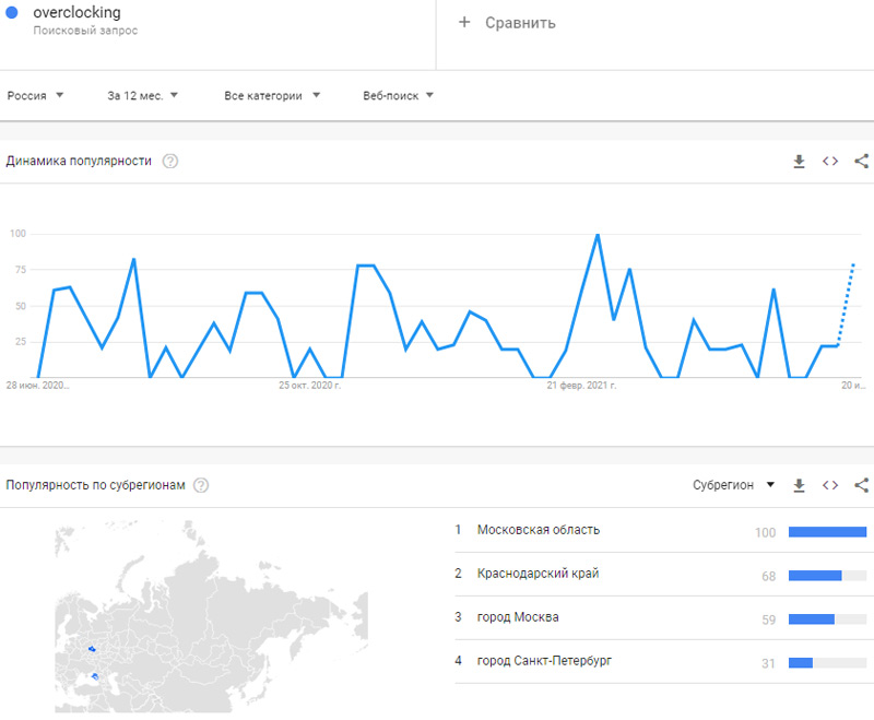 Предлагаю начать с анализа запроса «overclocking» по нашей стране.