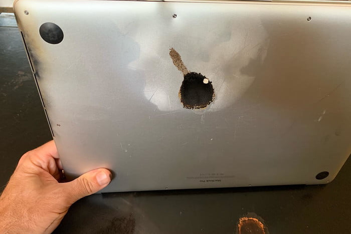 Мужчина сказал, что он обычно клал свой ноутбук на диван, или в ящик с бумагами, но, к счастью, в этом случае он оставил его на своем журнальном столике, что и спасло его от возможного крупного пожара. Также, Стив сказал, что когда батарея загорелась, его MacBook Pro находился в спящем режиме с закрытой крышкой и не работал.