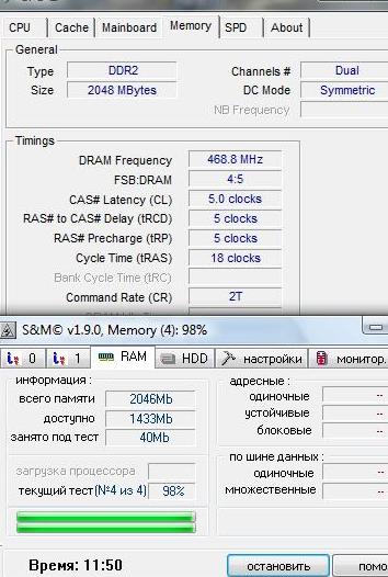 Сначала память у меня работала в режиме ДДР2-900 при 4-4-4-12 при 2.2В.
