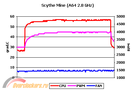 Теперь сравним с результатами, показанными новым кулером Scythe Mine.