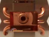 Процессор контактирует не с алюминиевым радиатором, а с тонким медным основанием, качество полировки которого таково, что в него можно смотреться, как в зеркало, только медь придаёт изображению жёлто-красный оттенок.