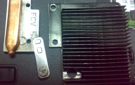 Итак. Здравствуйте, уважаемые читающие. Имеется у меня ноутбук Acer Extenza 5630EZ (Celeron Dual-Core T4200 (2Ггц), 2Гб DDR2, графика интегрирована в чипсет GL40). К ноутбуку уже привык за 2 года, расставаться никак не хочется. Поэтому было решено его постепенно усовершенствовать до достижения требуемого (хотя бы) уровня комфорта при работе на нём. Больше всего меня не устраивал повышенный нагрев жесткого диска (до 51гр). Долго вынашивал идею, каким же образом можно организовать его обдув и следовательно охлаждение пока на рынке за 50руб не попалась раритетная однослотовая GF8600, в которой был установлен такой вот радиатор