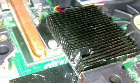 Видеокарта впоследствии оказалась нерабочей, БП уходил в защиту, может когда-нибудь доберусь. Ну в общем именно с этого радиатора и потянуло меня разобрать (опять) ноут. Картина вырисовывалась следующая: