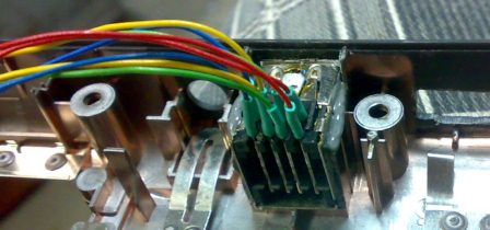Невооруженным глазом видно, что по крайней мере USB точно разведён на плате, проверка напряжения питания это доказала, +5в на двух крайних контактах присутствовала, что не может не радовать. На сайте Intel 'a для большей уверенности в своей правоте был найден даташит на чипсет GL40, откуда я узнал, что он поддерживает 4 порта USB 2.0 , а также то, что теоретически можно заменить чипсет на GM45 (если мне не изменяет память), который обеспечивает 16 линий PCI-E для дискретной видеокарты. Но если сам разъём для видеокарты ещё можно найти в каком-нибудь убитом ноутбуке, пусть даже чипсет заменить можно без особого риска, то как это всё заставить работать на уровне софта, для меня до сих пор остаётся загадкой