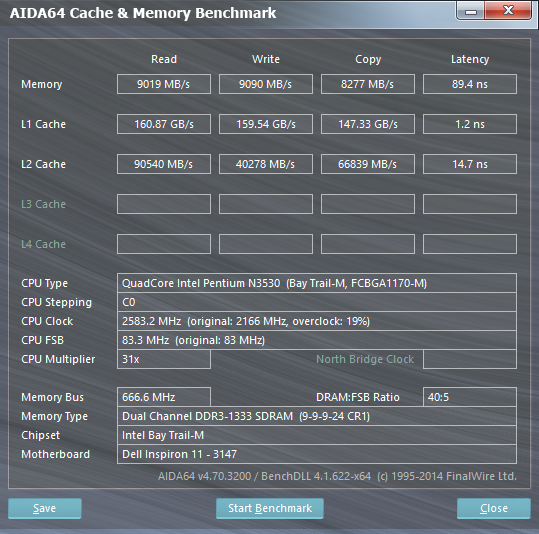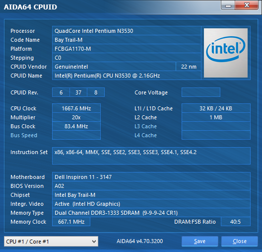 Пройдёмся на начинке. На рынке есть две основные модификации Dell 3147, первая из них — на двухъядерном Intel Celeron N2830, вторая — на четырёхъядерном Pentium N3530. Оба построены на одной и той же архитектуре Bay Trail-M, тепловыделение не позволяет сделать пассивное охлаждение. Таким образом, лично я не вижу смысла экономить 1.5-2 тысячи на процессоре, пусть уж лучше будет 4 ядра. Акселератор видео — Intel GMA HD, его удел — старые игры и мультимедиа. Проигрывание видео, вплоть до 1080p 60fps, проблем не вызывает. Игры — чисто для интереса, запустил 5-ю Цивилизацию, полёт нормальный. Но, конечно, это не первичное, и даже не вторичное предназначение такого ноутбука. Если же говорить о задачах, для которых я и покупал ноутбук, а именно — Word+Excel+Power Point+сериалы+веб-серфинг — всё работает без малейших подтормаживаний. Собственно, была бы странной обратная ситуация, т.к.для этого и нетбука хватало, в своё время=)