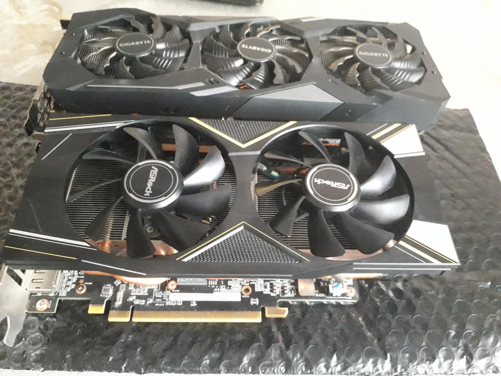 ASRock Radeon RX 5600 XT Challenger D 6G OC - с майнинг фермы. Впал в ступор от ее "функциональности". Самая младшая и дешевая в линейке производителя второго эшелона. К сожалению, скриншотов тестов не сделал, так что верьте мне на слово :-)