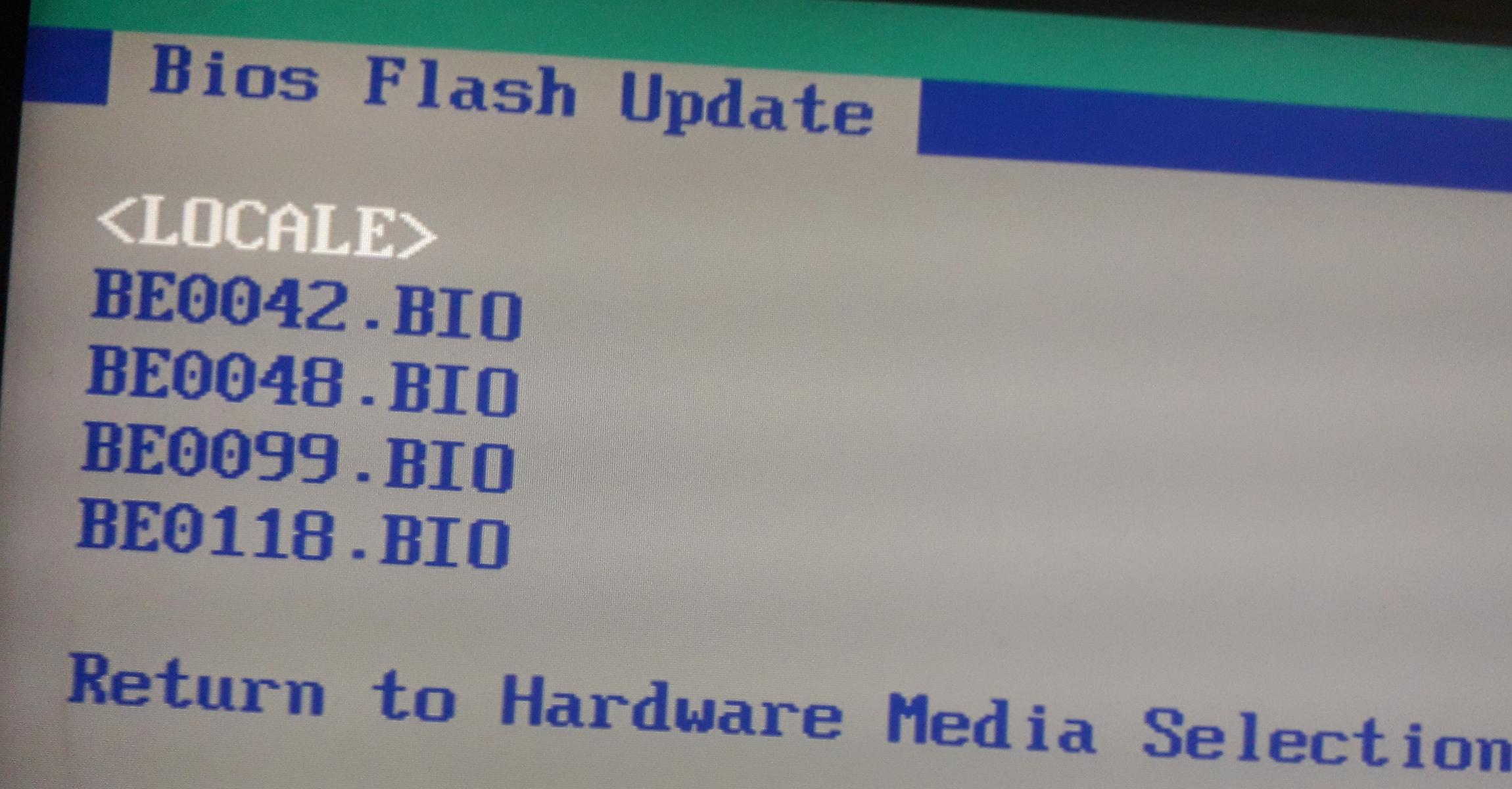 С помощью Rufus создается загрузочная флешка с freedos и на нее закидывается прошивальщик и необходимый нам ROM. Первое повышение может быть только до версии BE0042. Загружаемся через флешку и прописываем команду на запуск прошивальщика. Процесс обновления пройдет без осложнений.