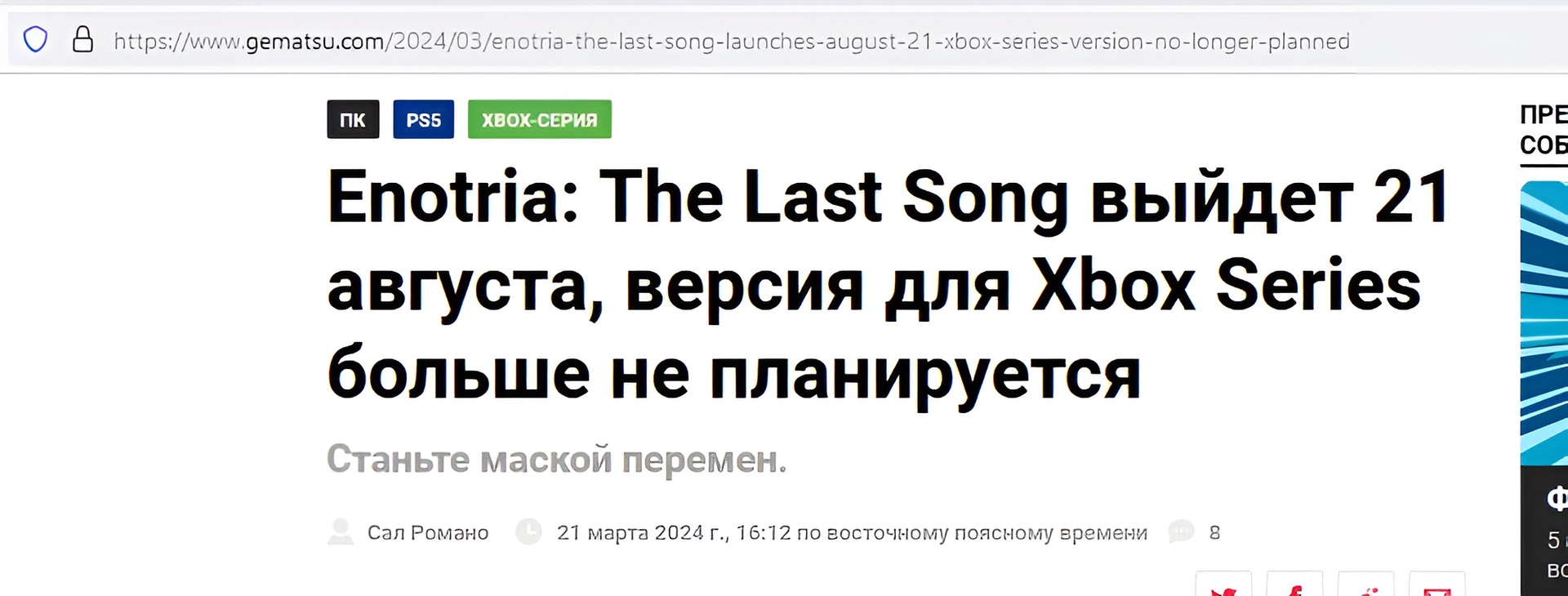 На днях еще один из деятелей объявил об отказе от Xbox. Итальянская студия из 20 человек. Примечательно, что на презентации коробка была в списке целевых платформ на старте.