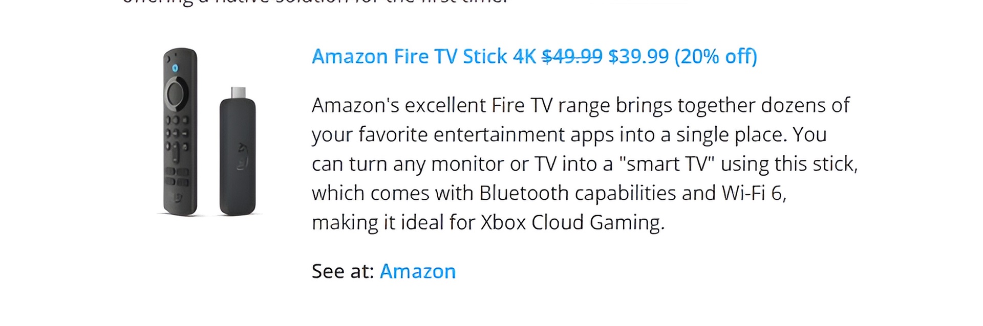 Изначально Xbox Cloud Gaming будет доступна на моделях Amazon Fire TV Stick 4K и Fire Stick 4K Max, с возможностью дальнейшего расширения на более дешевые модели. Для игры потребуется контроллер Bluetooth Xbox Series X|S.
