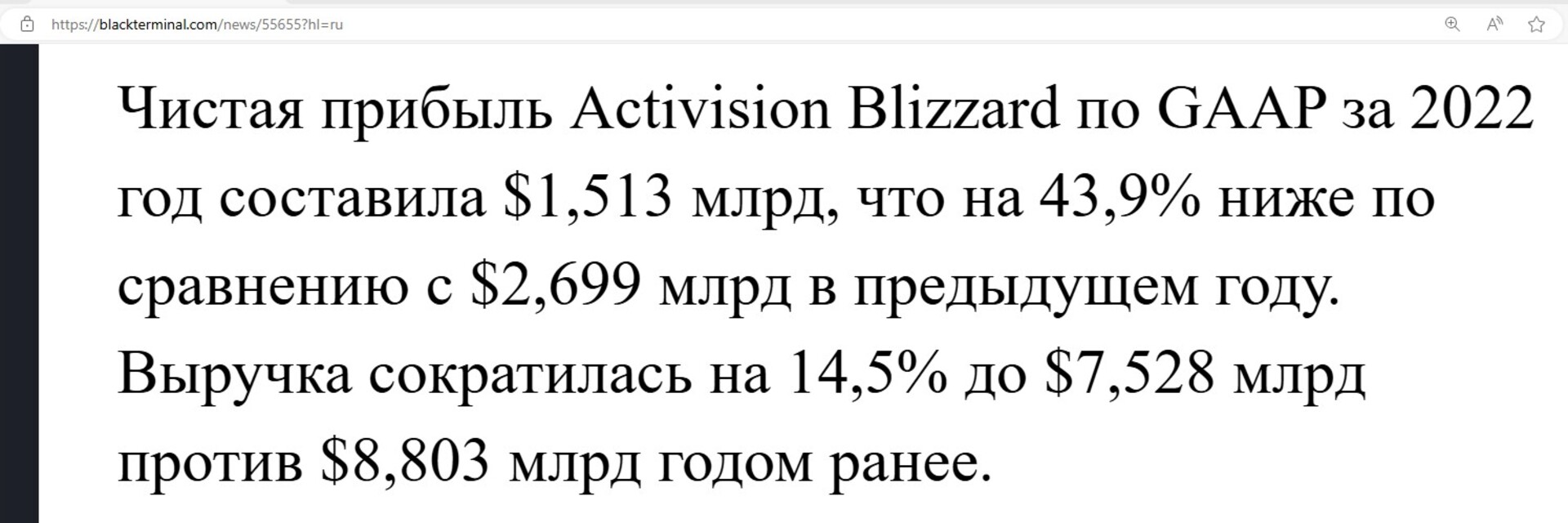 Годовая выручка Активижен-Близард до приобретения была примерно 8 млрд. тугриков.