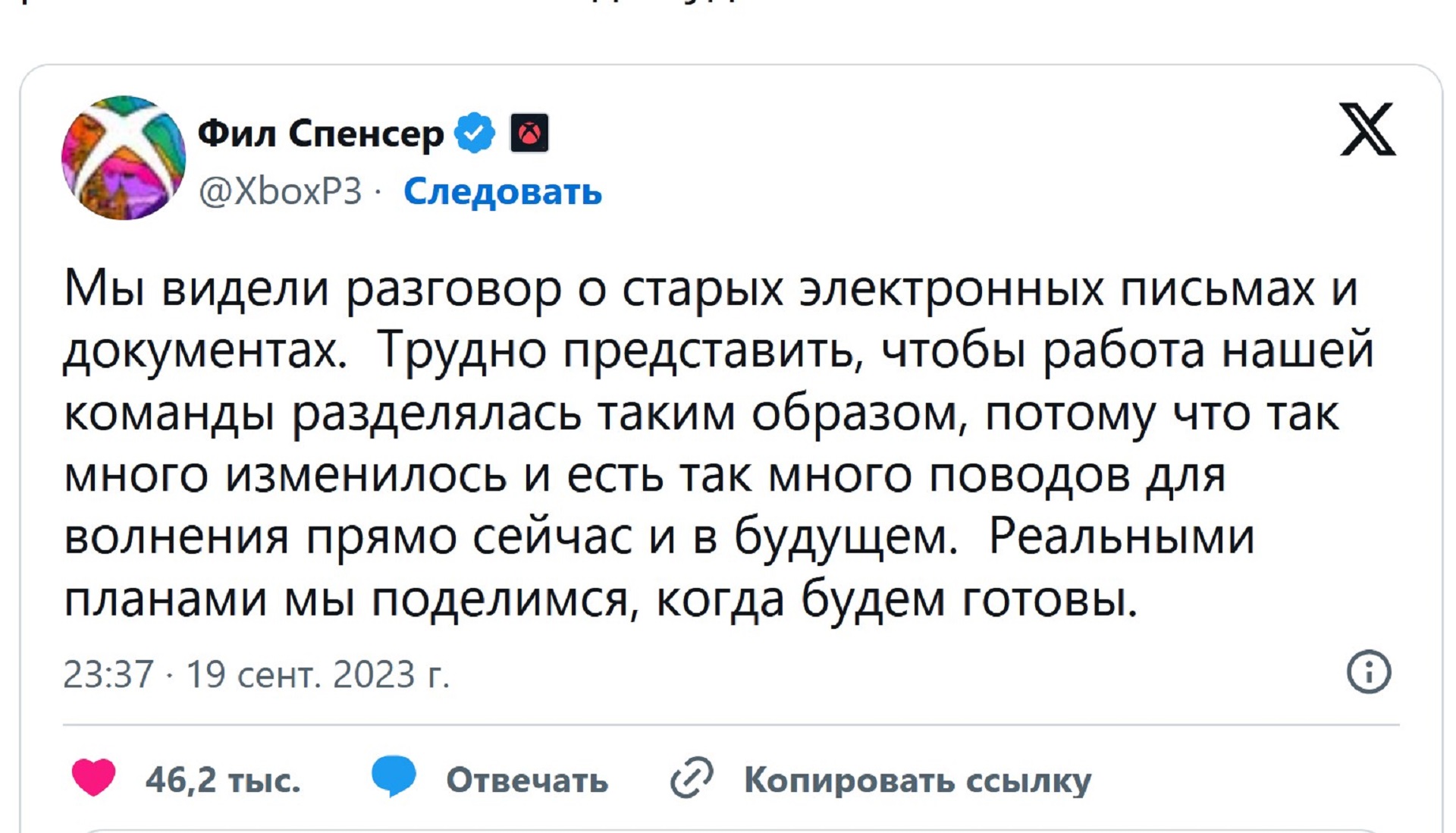 Буквально через день после утечки появляется сообщение от самого главы Xbox. Посыл был простым "Это все ложь и провокация" В документах нет ничего интересного и наши планы давно поменялись. Между предоставлением слайдов суду и их утечкой прошло пол года.