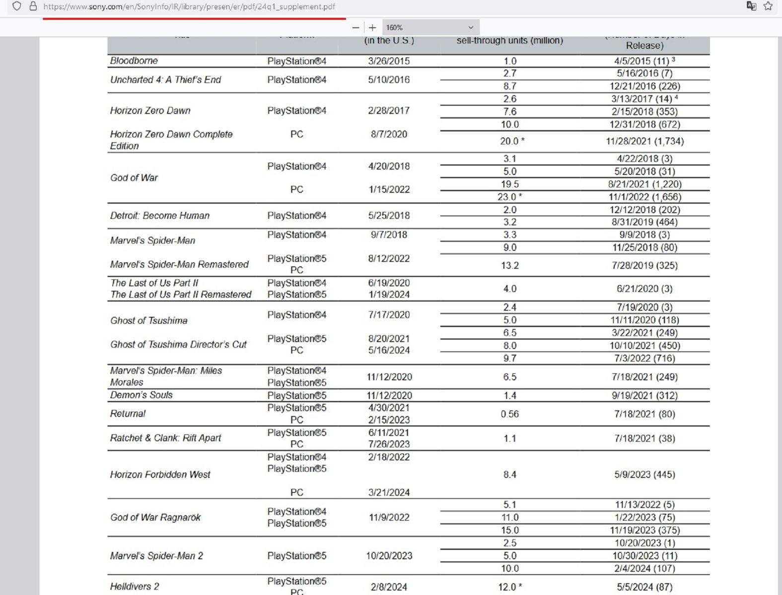 Изначально официальные цифры по этому вопросу я увидел в утечках документов Sony со списком всех игр от внутренних студий. Но найти первоисточник не смог, и данные представлены сайтом VGChartz. У меня предвзятое отношение к этому ресурсу, так как их цифры идут с сильной погрешностью (15-20%), но это мало влияет на реальное положение дел.
