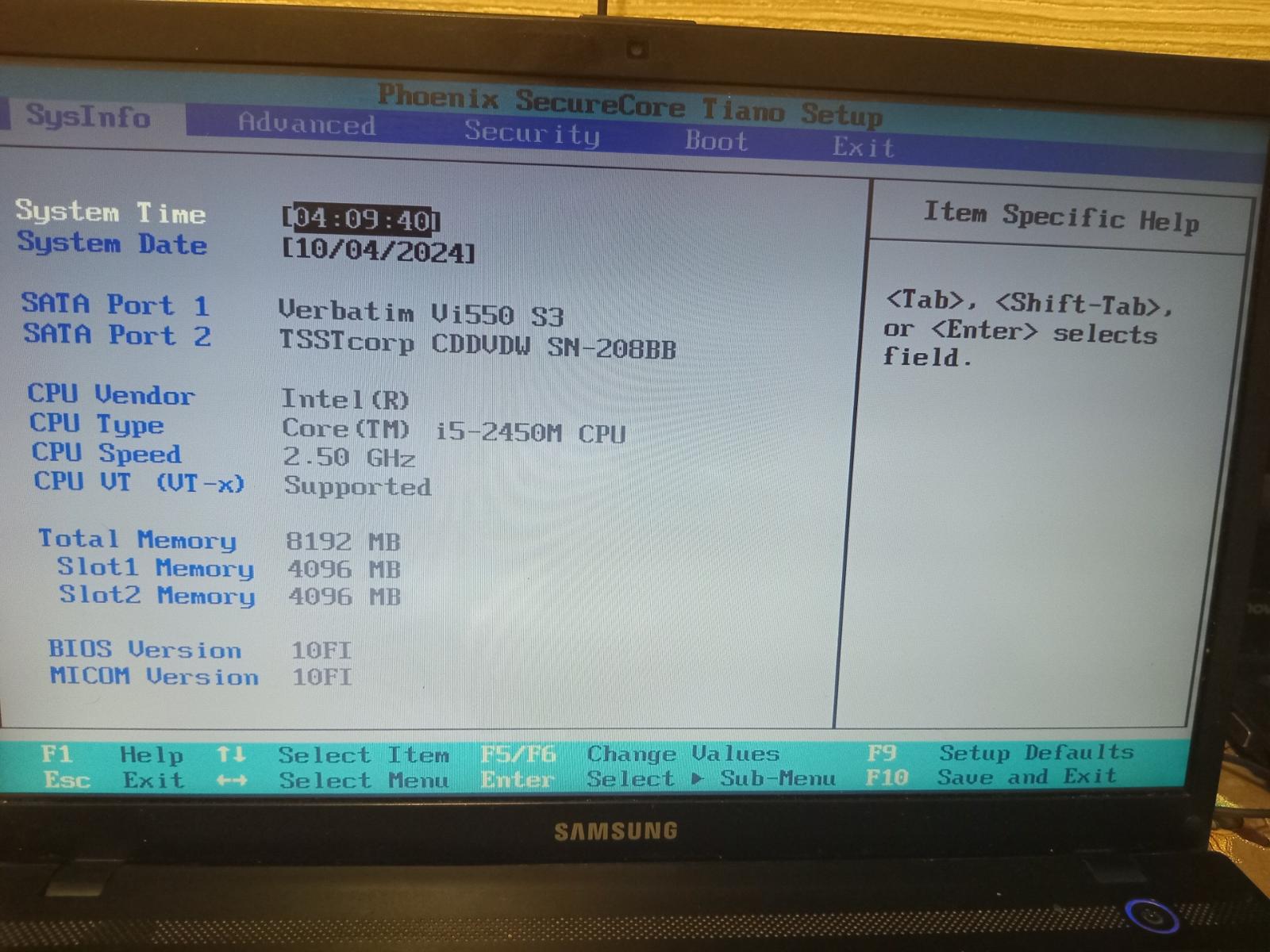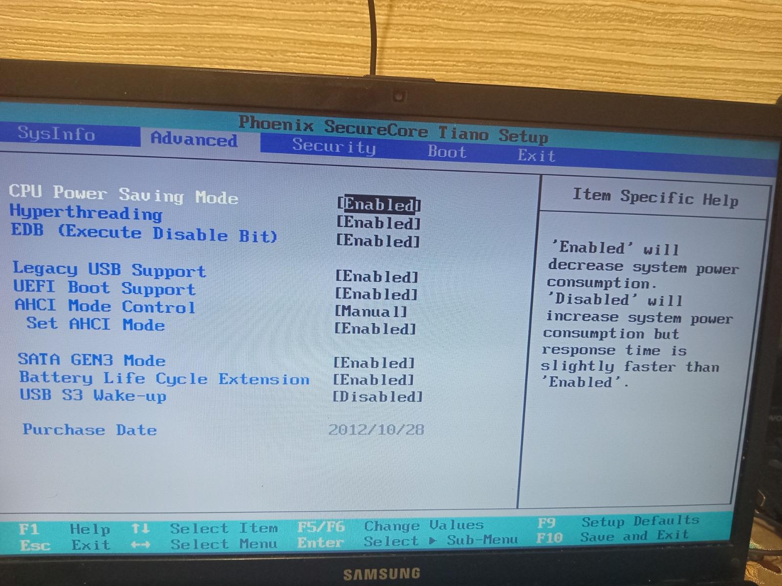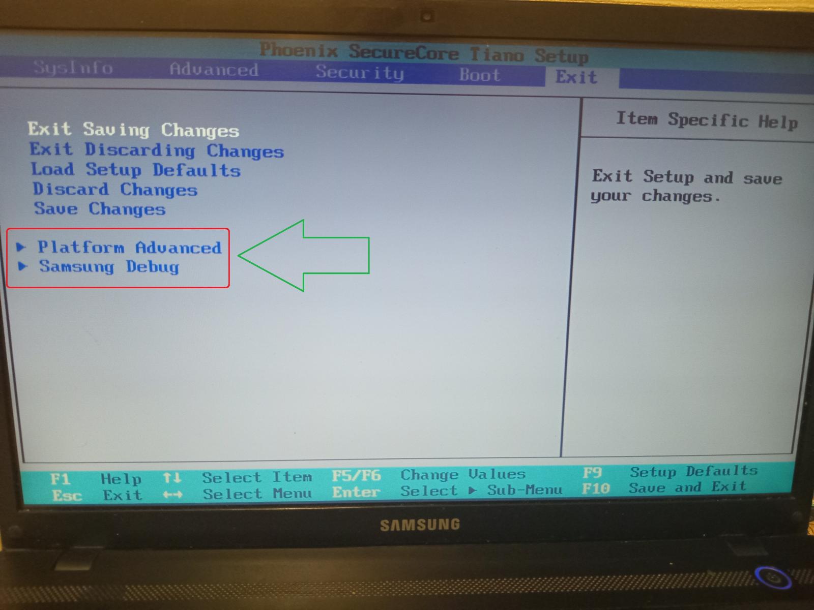 В моем случае речь идет о ноутбуке Samsung NP 300v5a. При посещении BIOS по нажатию функциональной клавиши F2 мы попадаем во внутреннее меню и далее зажимаем 4 кнопки ctrl+chift+alt+F4 - магическим образом получаем новые инструменты для настройки аппарата.