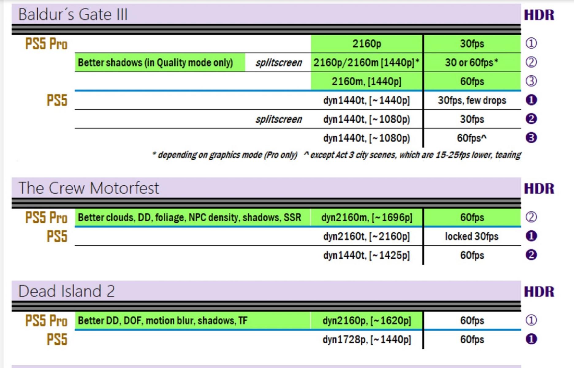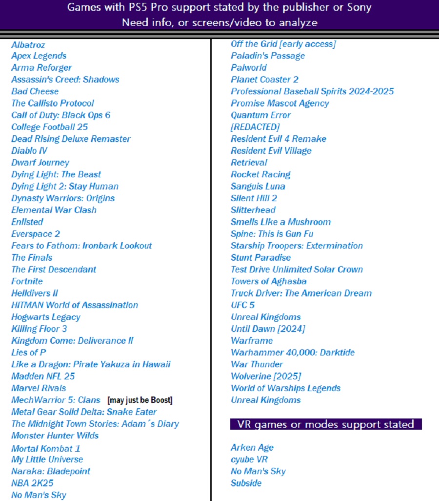 За безымянными наименованиями стоит намного больше, чем может показаться на первый взгляд. На ResetEra люди составили список протестированных игр и сравнение между сборками для PS5 и PS5 Pro, и отличия касаются не только частоты кадров и разрешения. Появляются тени, отражения, увеличивается дальность прорисовки, разрешение текстур, подповерхностное рассеивание, анизотропная фильтрация, окклюзия, детализация окружающих объектов и множество других изменений. Это гораздо больше, чем простые частота и разрешение.