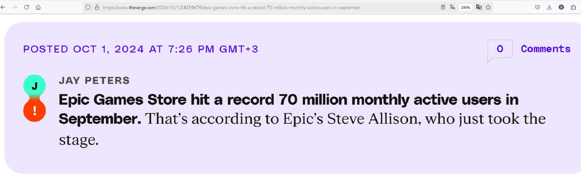 Результат? В 2024 году число активных пользователей Epic Games Store на ПК достигло 70 миллионов человек. У Steam этот показатель около 150 миллионов. А у Xbox… там аж 500 миллионов активных пользователей.