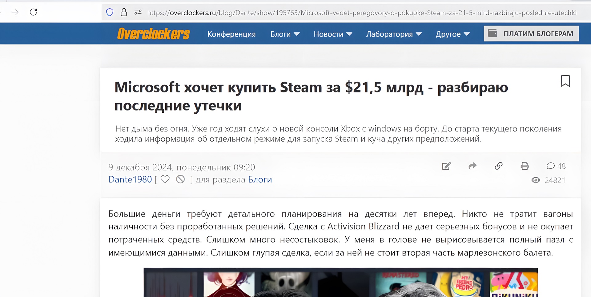 В декабре 2024 года появилось несколько странных телодвижений с непонятными целями. Гейб Ньюэлл активно начал нахваливать Microsoft и положительно высказываться про внутренние игровые студии Xbox. В этом нет ничего странного, так как с этих игр капает много денег. Но давняя история двух компаний не располагает к приятному и любвеобильному общению.
