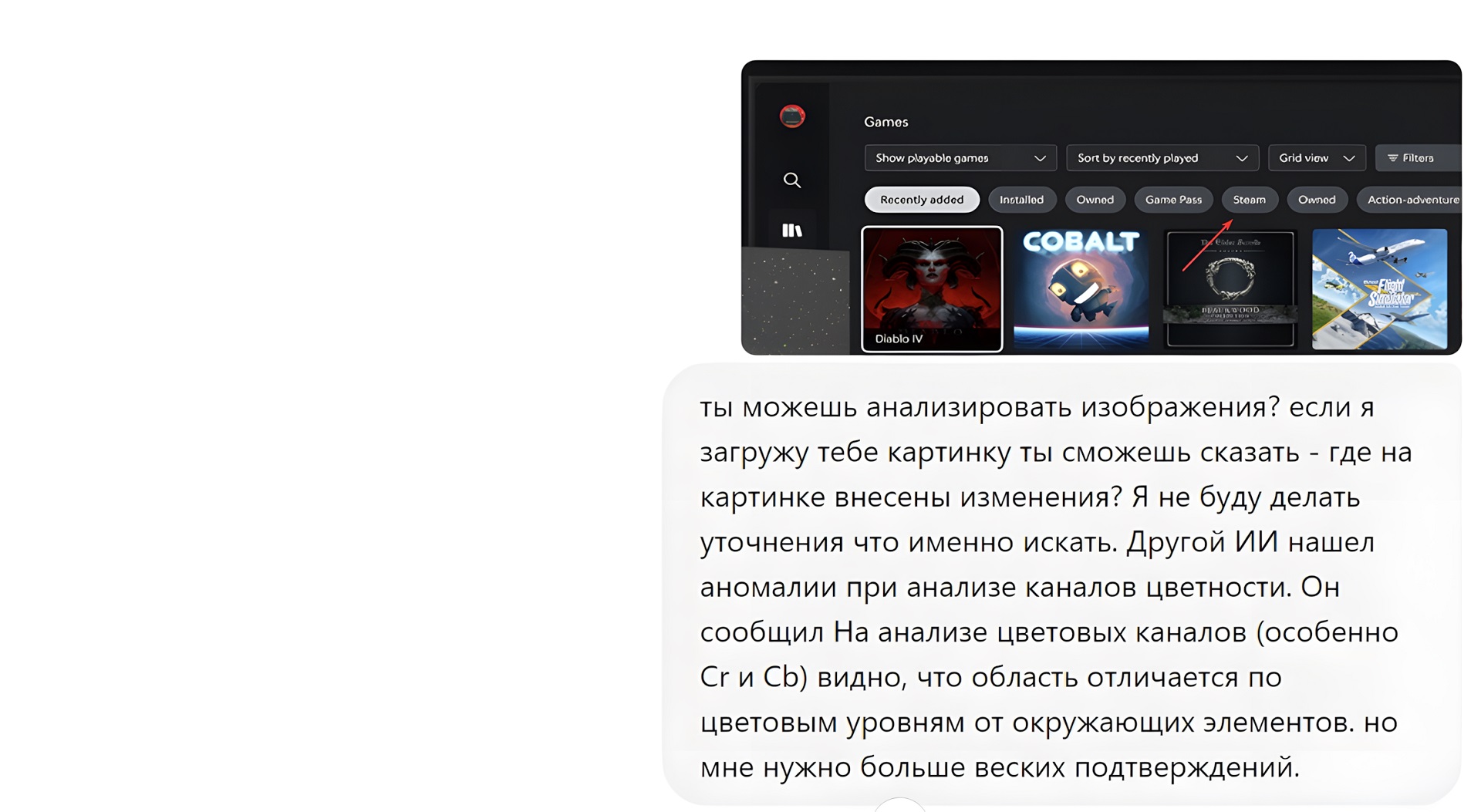 Робот четко определяет, что кнопка Steam — это аномалия и изображение отредактировано. Случайное совпадение. Ручками отредактировали фрагмент именно в том месте, что вызвало широкий общественный резонанс.