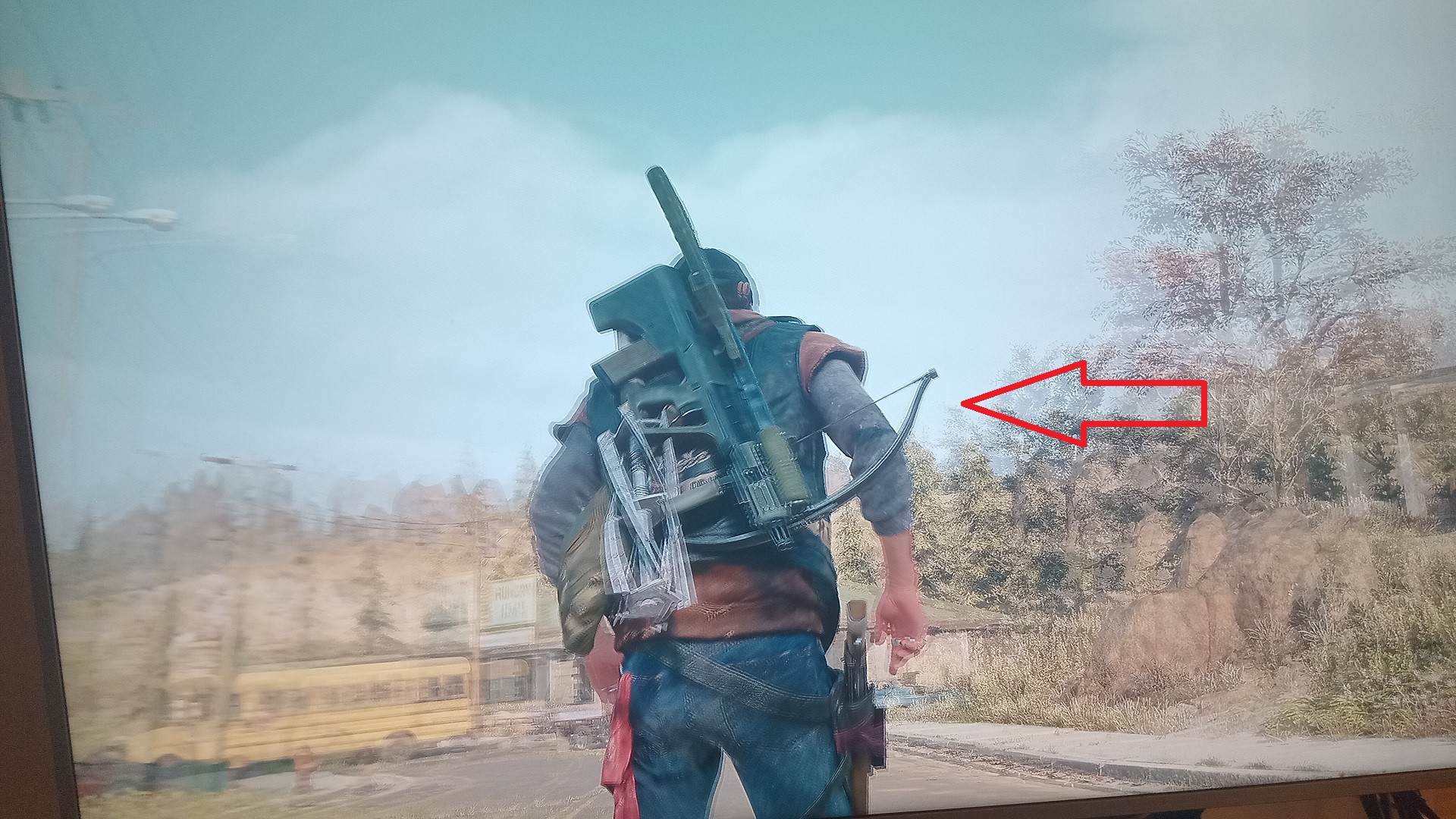 Закрутив Дикона вокруг своей оси, отчётливо видно два лука, что и запечатлел на обычный телефон. Задний фон двоится, так как двигается слишком быстро, и камера не успевает, зато ближний объект меняется незначительно, чтобы видеть эффект. И это речь про крупные объекты, с мелкими всё намного хуже.