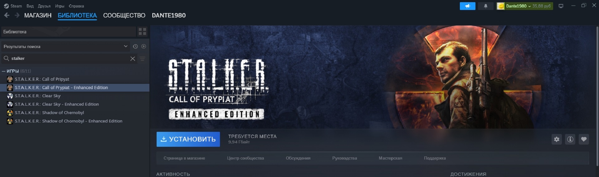 Это мой аккаунт STEAM, на который я БЕСПЛАТНО получил игры серии S.T.A.L.K.E.R., а пару дней назад — БЕСПЛАТНО обновление всех трёх игр.