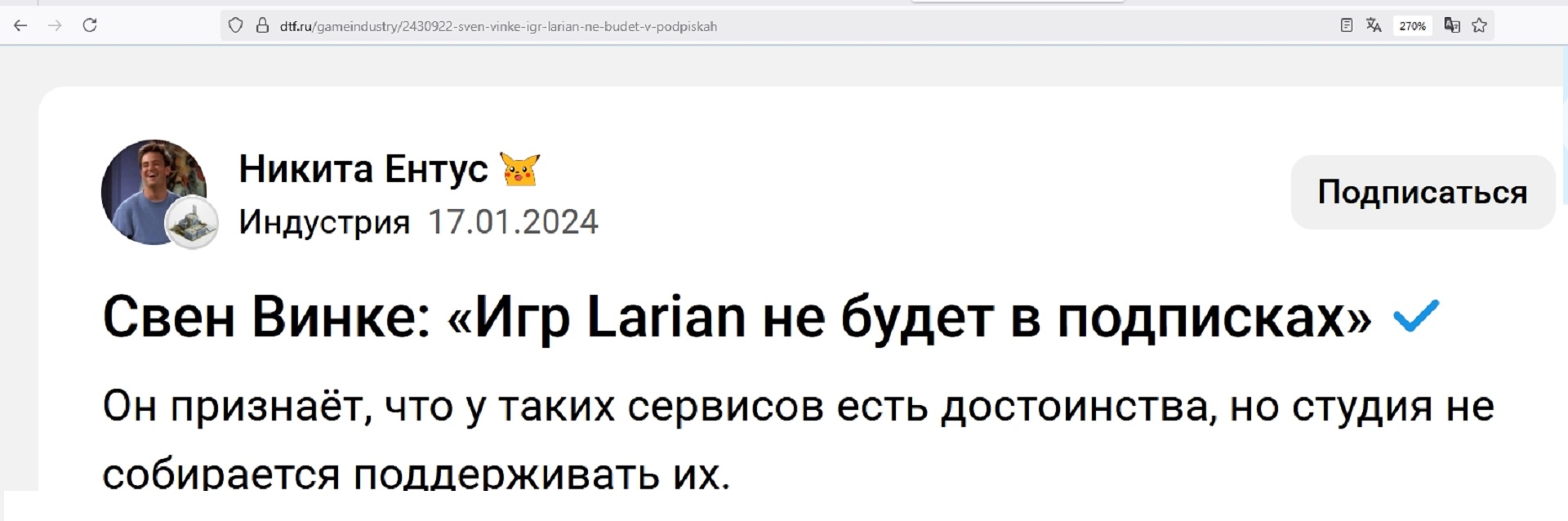 Есть золотое правило: «70% выручки приходят в первые три месяца продаж». Существует несколько исключений, но для подавляющего числа проектов — это негласный закон. Стоит ли мне упоминать, что релизы «Day one» должны приносить своим создателям ту самую выручку в «70%», что нафантазировали аналитики и эффективные менеджеры. Если с игры планируют получить много грязных бумажек, то она не попадет в подписку. И тут возникает: «Или игру все хотят и она стоит много денег для релиза в день выхода, или она не стоит ничего и народу она не интересна».