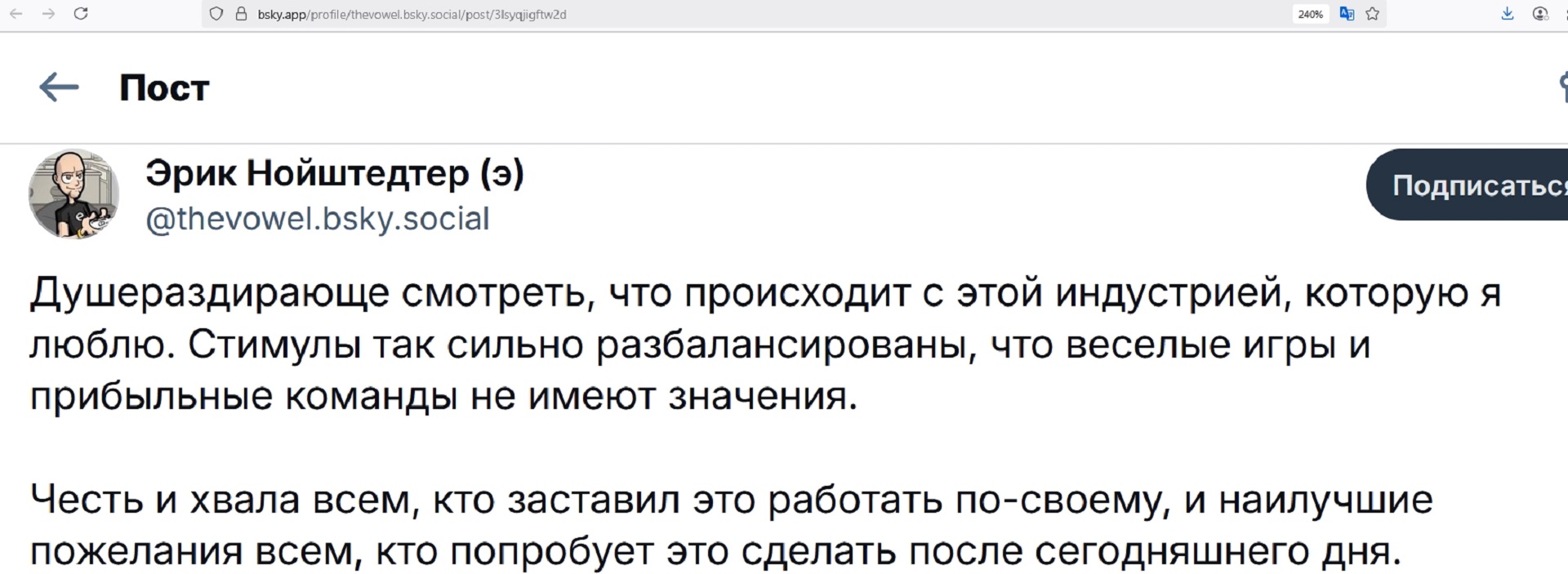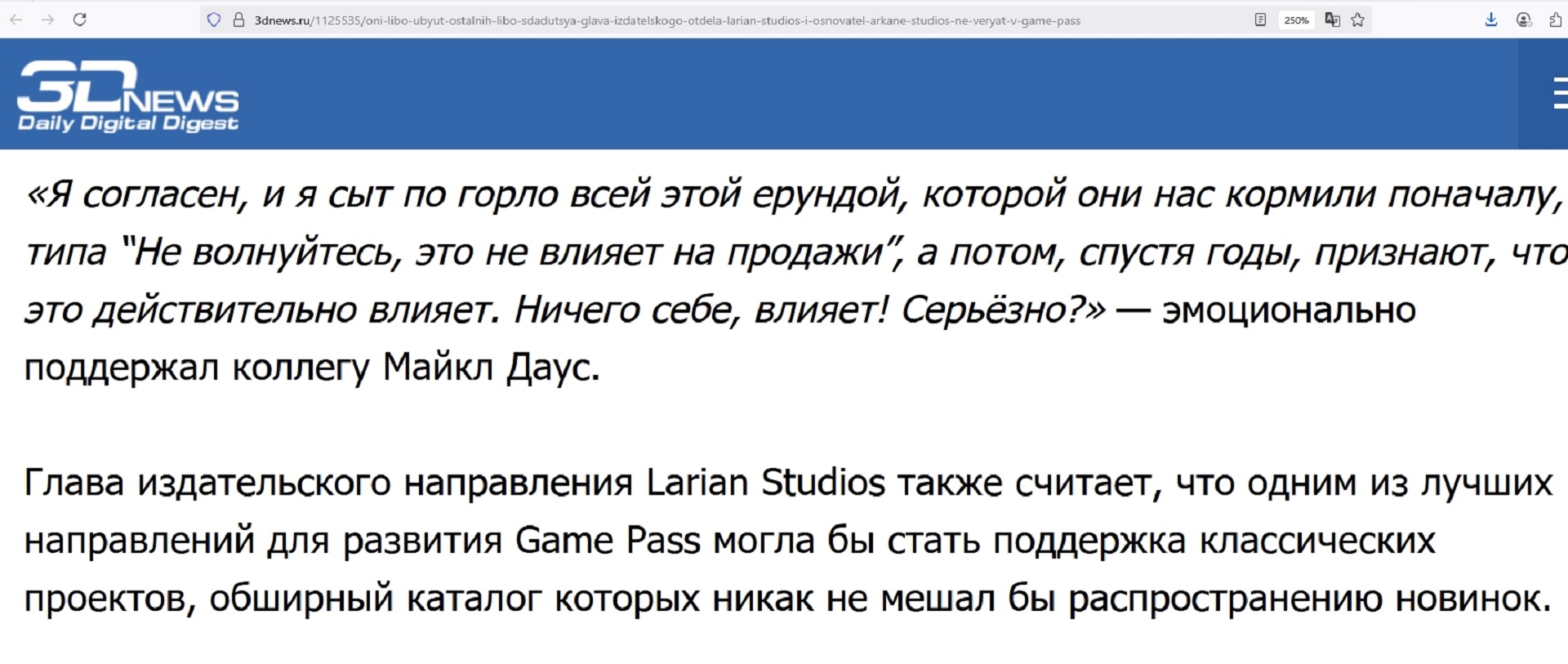 Я могу выложить сотни постов от разных крупных деятелей игровой индустрии. Настолько массового и единодушного высказывания от «случайных» людей давно не было. Деятельность Xbox и их сервис подписки давно сидит у всех в печёнках.