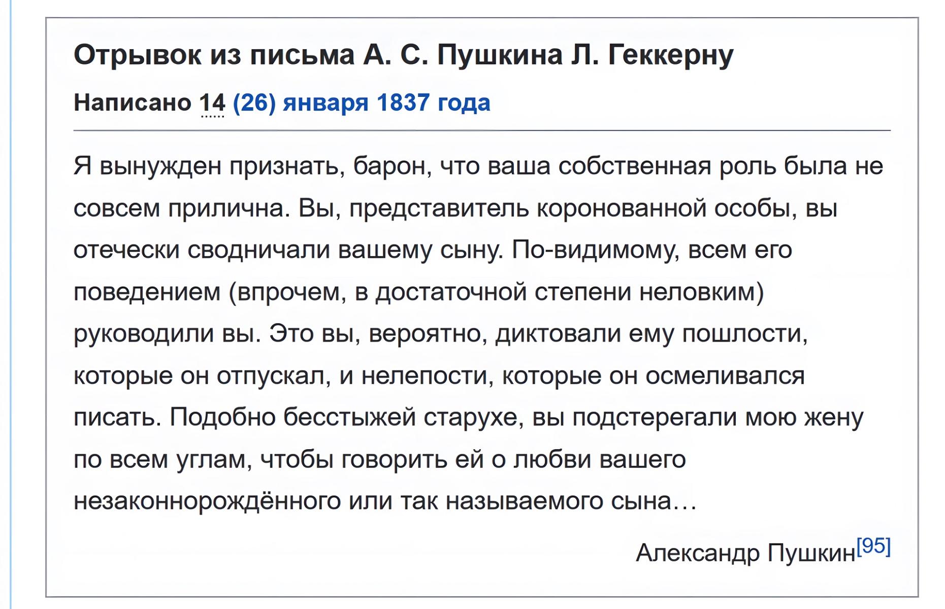 До сих пор не установлено, кто послал письмо и кто является первопричиной произошедшего. Именно с него начинается история дуэли.