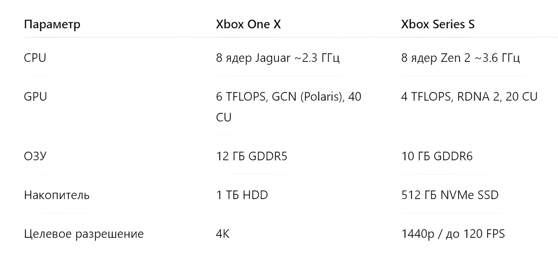 6 терафлопс и 12 ГБ быстрой памяти против 4 терафлопс и 10 ГБ медленной памяти. Новое устройство имеет более современный процессор, заметно превосходящий оригинал, но в большинстве сценариев упор идёт в видеокарту и пропускную способность памяти. Говоря простым языком — сэкономили на спичках, и старая Xbox One X регулярно показывает лучший результат.