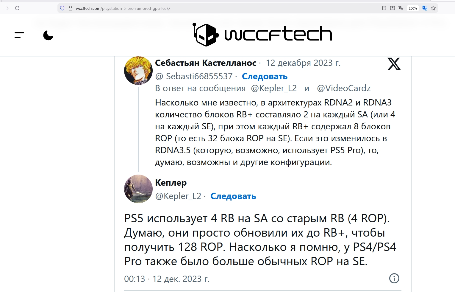 Правда, этот же человек не смог правильно назвать базовые характеристики про внутренности PS5 Pro, и его поправил обычный продвинутый пользователь, который по итогу оказался прав — без доступа к техническим документам и гаданиям на кофейной гуще.