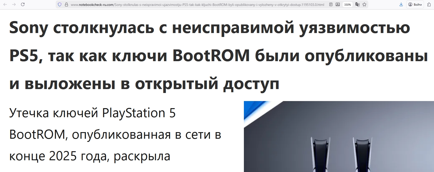 31 декабря 2025 года произошло немыслимое — в сеть утекли ключи шифрования PlayStation 5. Это событие вселенского масштаба. Для защиты от взлома системы японская корпорация использует два ключа: