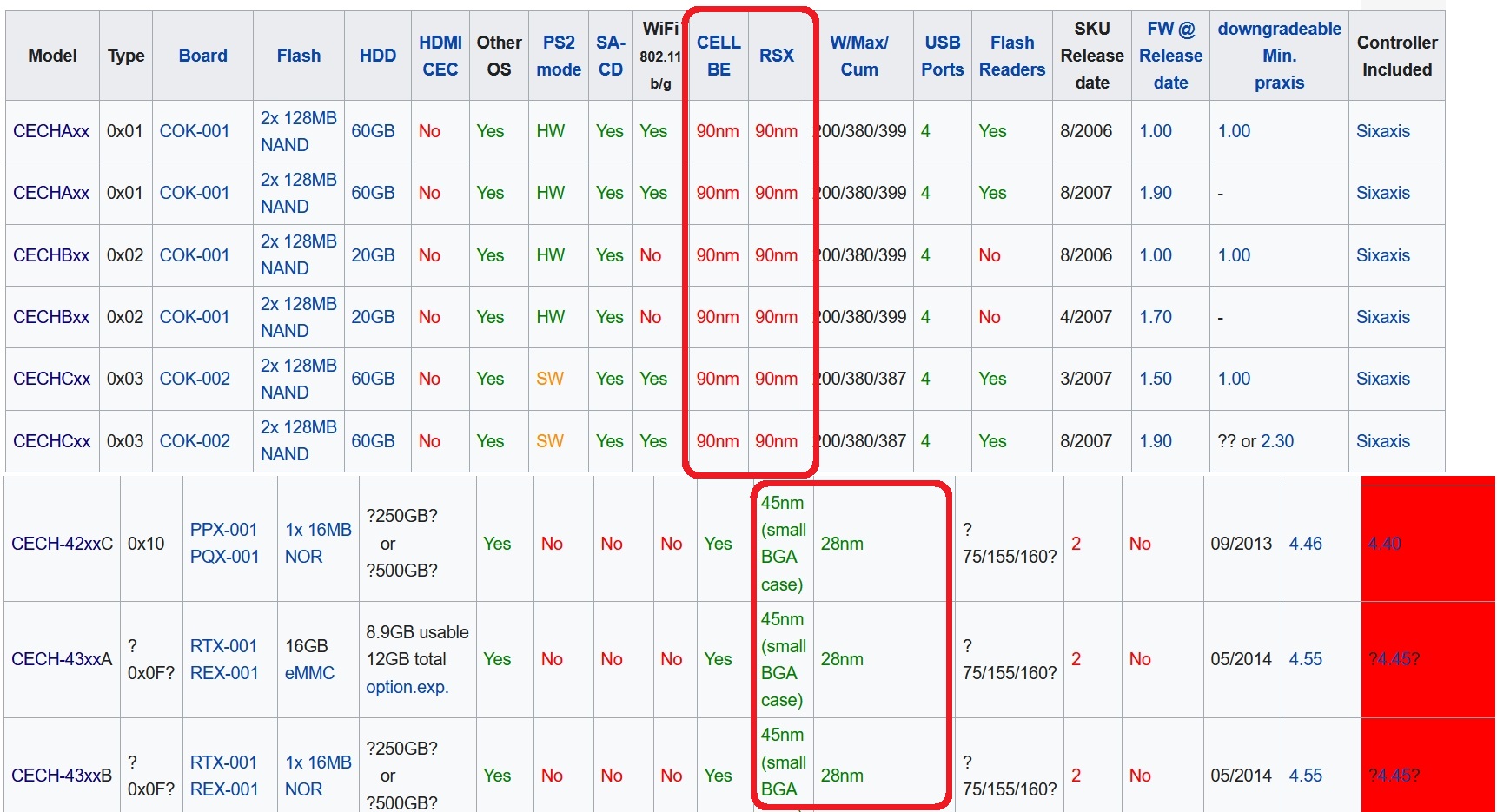 Последние ревизии устройства уже создавались по передовым 45 нм для процессора и 28 нм для видеокарты нормам. Пиковые значения потребления стали менее 160 ватт. В результате данного недоразумения последние ревизии PS3 получили скрытый запас по тепловыделению и частотному потенциалу. Эта особенность наиболее ценна в свежей модификации.