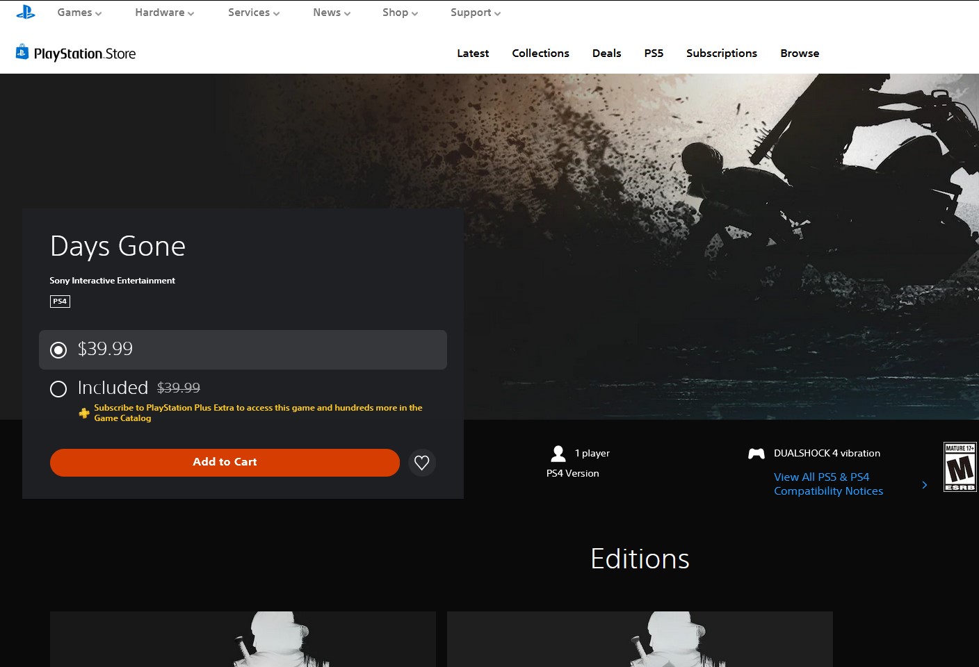 Days Gone получила постоянную базовую цену в 40 и скоро все скидки будут сверху накручиваться на этот прайс